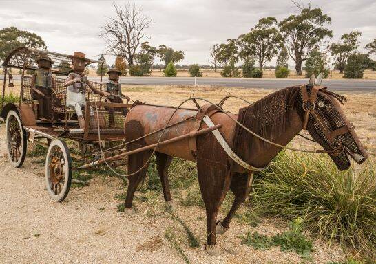 Saw some amazing art along the way the Kangaroo and Emu in someone's paddock, the horse and carriage was near the sign for Lockhart