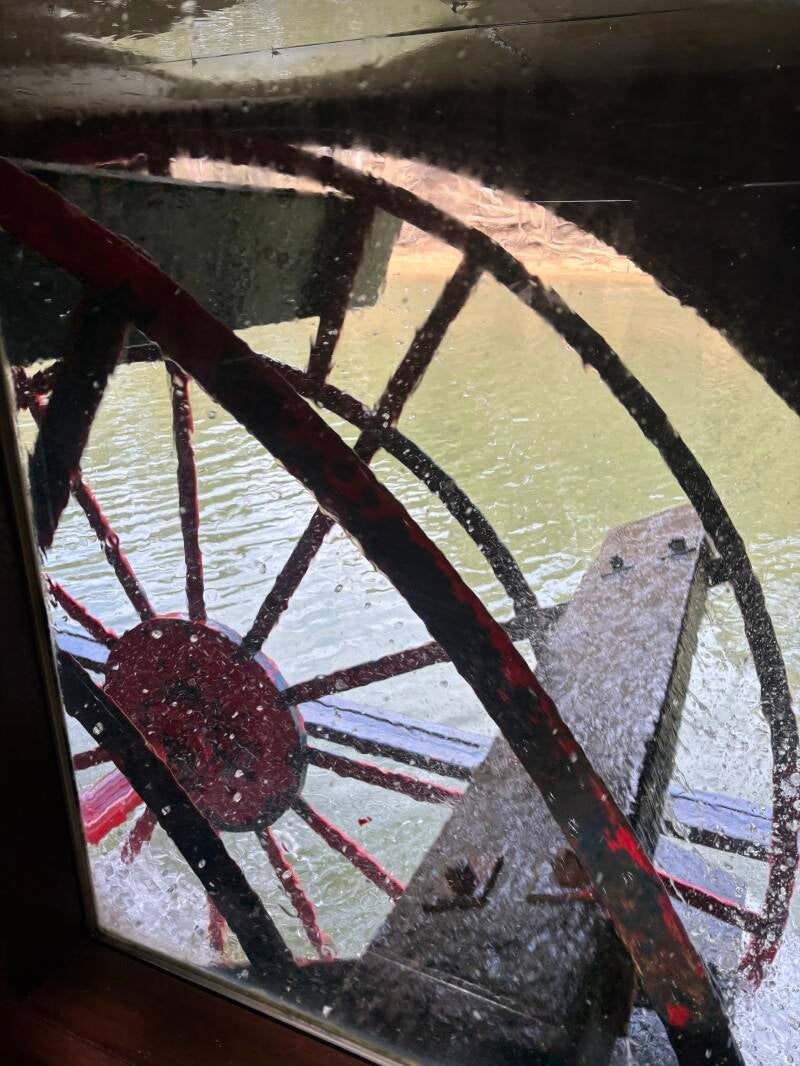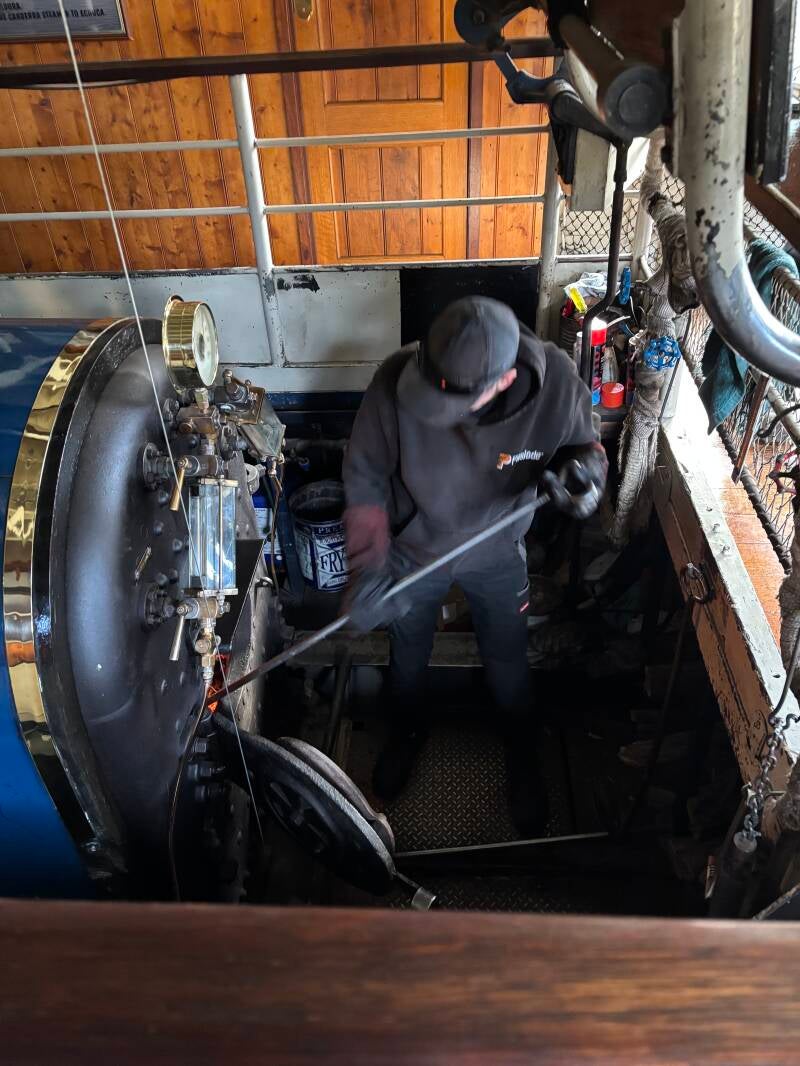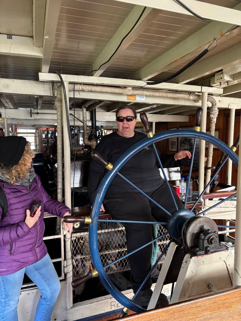 Yes, that's me wearing a beanie, told you it was cold.  Loved playing with the steering wheel.  You could feel it sort of grab when the boat was going the right direction.